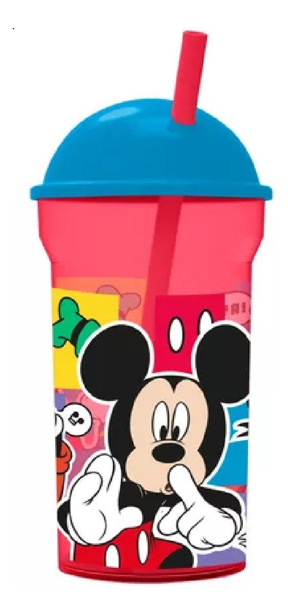 Vaso Tapa Alta + Pajita 460 Ml Mickey Mouse Playking Color Celeste Y Rojo